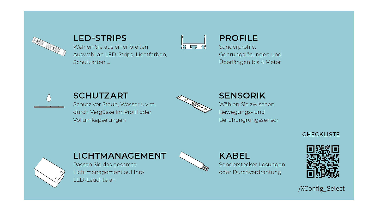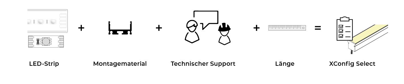XCONFIG SELECT – für die perfekte Kombination aus LED-Strip, Montagematerial, technischer Beratung und der gewünschten Länge.