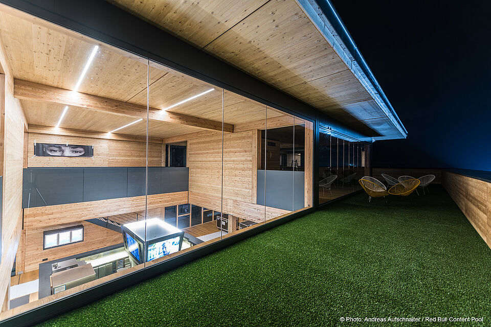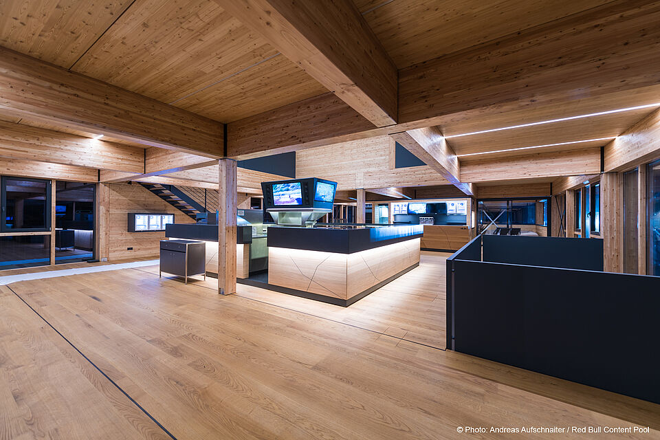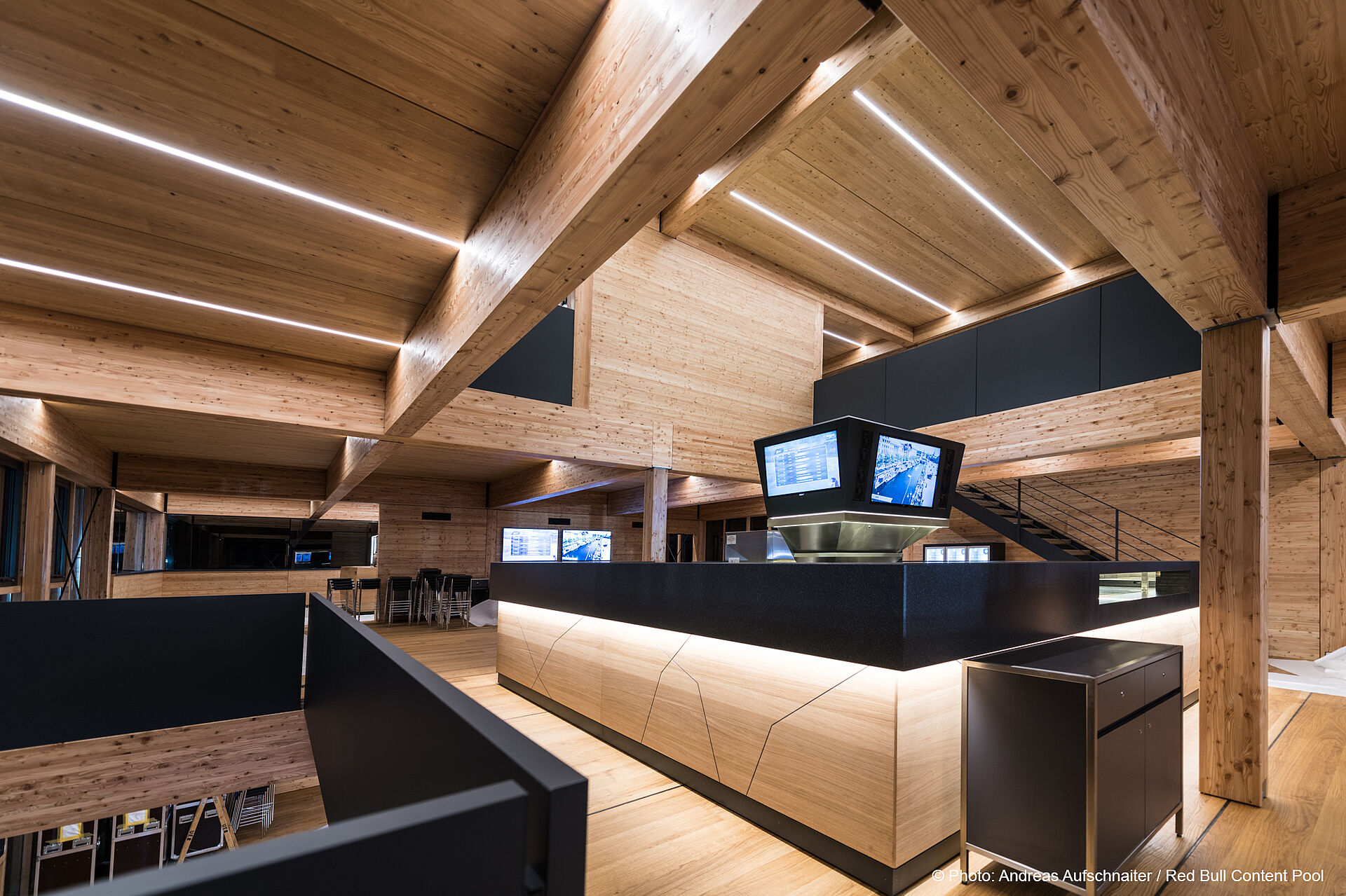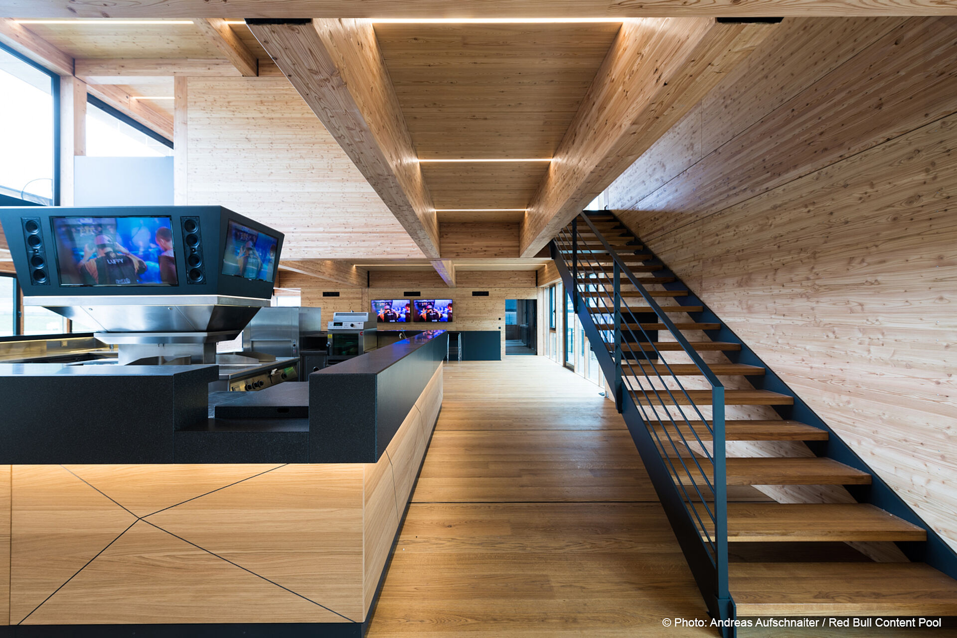 Red Bull hat hier ein außergewöhnliches Projekt geschaffen, das nicht nur in der Konstruktion sondern auch in der Logistik ausgeklügelt ist. Es freut uns, das unsere Produkte dabei helfen, dass sich die Besucher im „Holzhaus“ wohlfühlen und neue Energie tanken können.