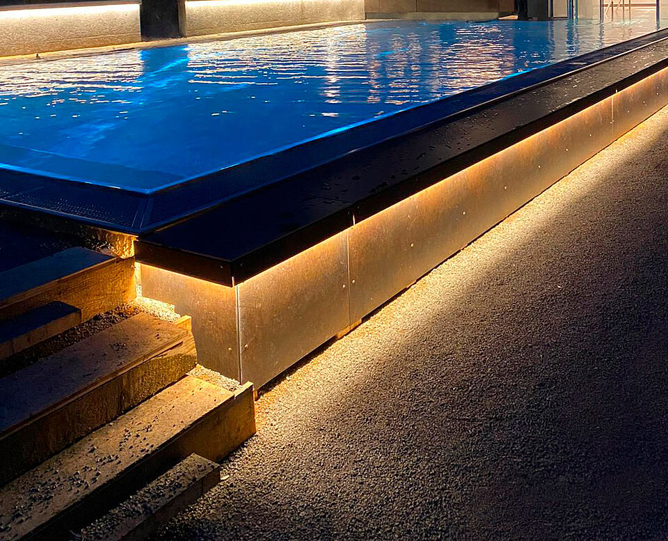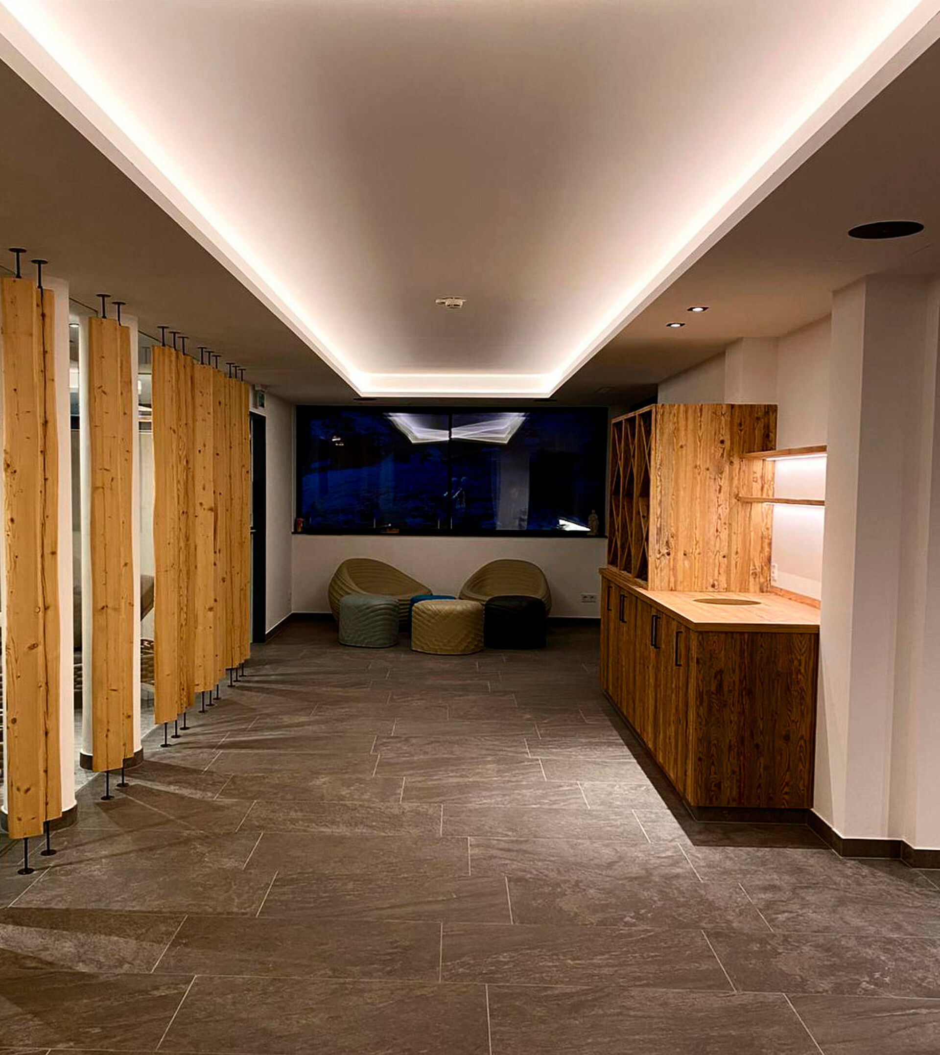 Ende des vergangenen Jahres eröffnete das Hotel Stadt Wien in Zell am See seinen neuen Spa- und Wellnessbereich. Rustikales Holz, Stein und klare Linien sorgen für ein modernes und gleichzeitig behagliches Raumgefühl. Die Firma BLTechnology durfte den neuen Spabereich des Hotels komplett ausstatten und sorgt mit dezenter aber effektvoller LED-Beleuchtung für eine stimmungsvolle Atmosphäre die zum Entspannen und abschalten. Die indirekte Beleuchtung bringt zudem die natürlichen Materialen, die im Interieur verwendet wurden, besonders zur Geltung. Insgesamt wurden knapp 150 Laufmeter BL ECO+ sowie über 100 Laufmeter Profile verbaut.