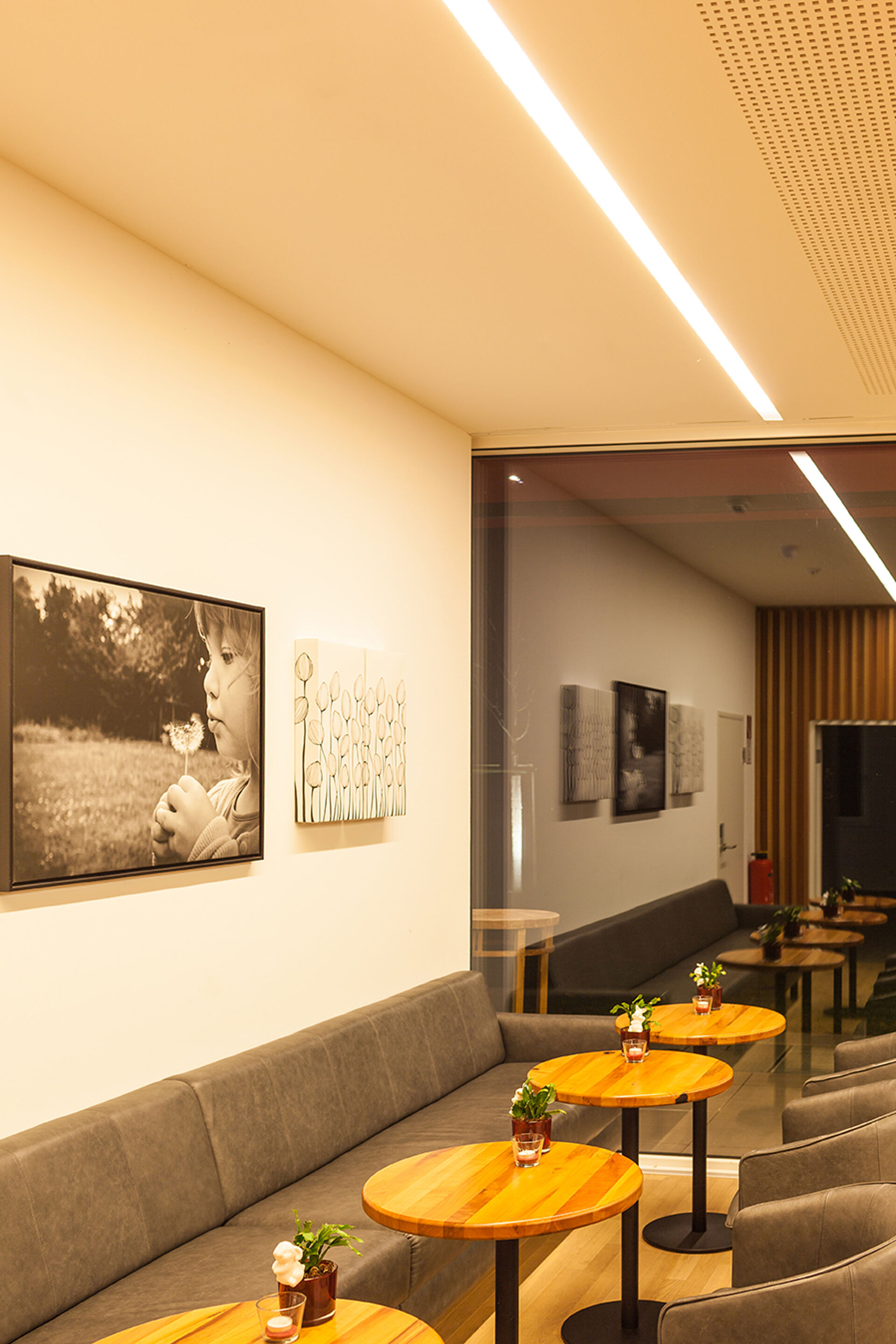 Ein Hotel in Wallern mit großem Einzugsbereich, sollte auch in Sachen Licht auf vielfältigste Anforderungen eingestellt sein. Das Seminar- und Familienhotel vertraut in vielen Bereichen auf LED-Beleuchtung von BLTechnology. So setzen zum Beispiel BLTechnology RGB-Module effektvolle und einladende Akzente in Café und Bar. Auch Tresen, Rezeption und Raumlicht der Zimmer werden energiesparend über LED-Technologie versorgt. Alles angesteuert über REG KNX Steuergeräten zur kompletten Implementierung in der Haustechnik. Wer also in der Gegend ist: Einfach mal reinschauen – Nicht nur des Lichtes wegen ...