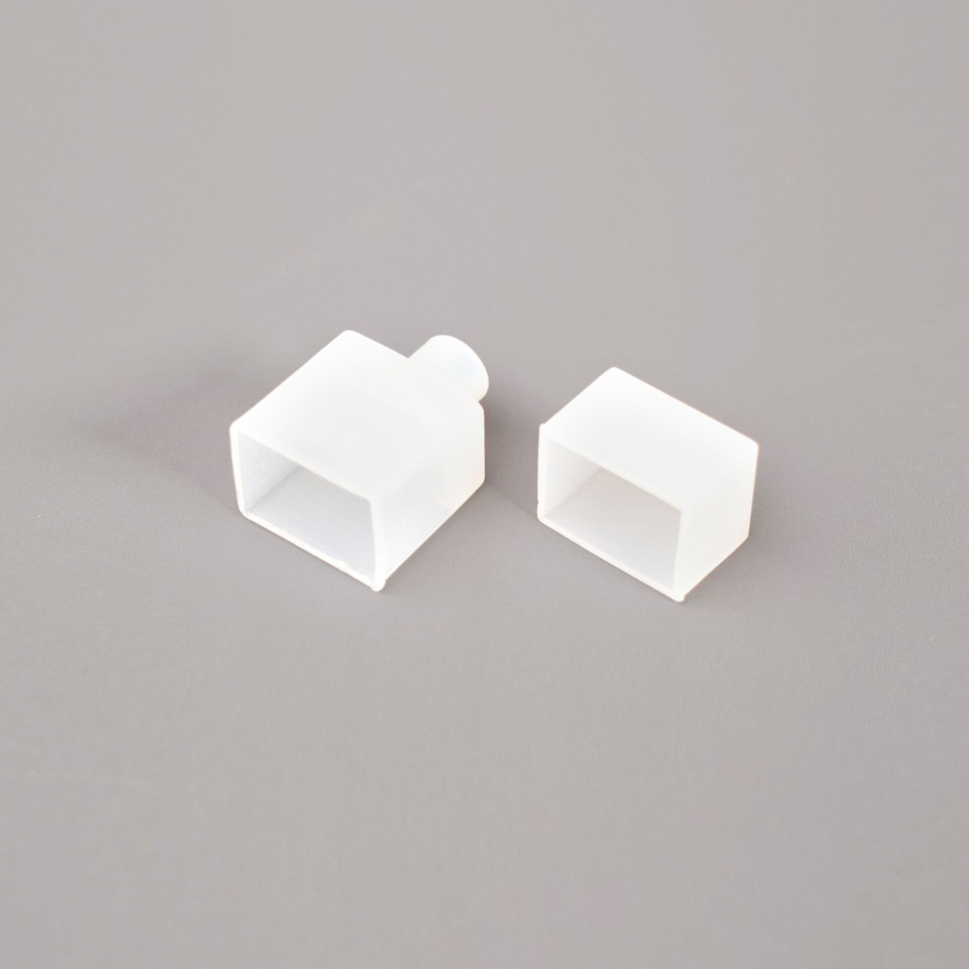 Endkappen-Set Silikon weiß für NEON SIDE, Schutzart IP65, 1 Endkappe ohne Kabelloch, 1 Endkappe mit Kabelloch vorne
